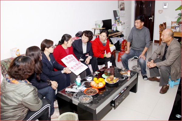 2012年10月17日,盡管季節(jié)已進入瑟瑟寒冷的深秋,但新疆華春投資集團的愛心捐款,為患病員工送去了溫情暖意。新疆華春投資集團工會主席高青與人力資源部、集團子公司華景物業(yè)及編輯部的管理人員一行,代表新疆華春投資集團李成功總裁和華春全員前去親切慰問患病的員工杜菊萍,當她接過李成功總裁和華春員工16925元的愛心捐款時,流下感動的淚水。杜菊萍的丈夫激動的一再說:“太感謝華春老總和華春人了,對一個基層員工還這樣的關(guān)心,太感謝、太感謝了!”