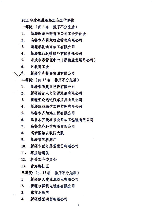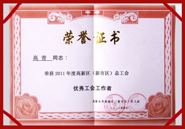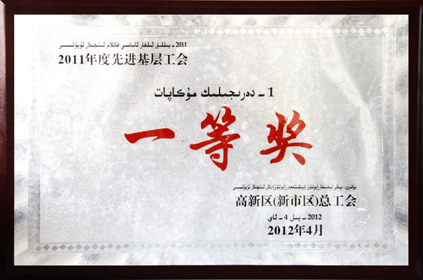 在剛剛結束的工會工作年度評比中,華春工會與華春工會主席高青被高新區(qū)(新市區(qū))總工會評為“先進基層工會一等獎”、“優(yōu)秀工會工作者”,同時榮獲由烏魯木齊市總工會、市安全生產(chǎn)監(jiān)督管理局評定的“2010-2011年安康杯競賽先進集體”。