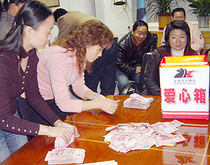 在舉國(guó)上下以實(shí)際行動(dòng)學(xué)習(xí)貫徹十七大提出的關(guān)注民生、構(gòu)建和諧社會(huì)精神之際,11月4日下午,新疆華春投資集團(tuán)工會(huì)舉辦了“華春全員為患病員工獻(xiàn)愛(ài)心捐助”活動(dòng),華春全員都伸出了溫暖之手,積極為患病員工于志友進(jìn)行捐助,捐助金額共計(jì)41200多元。