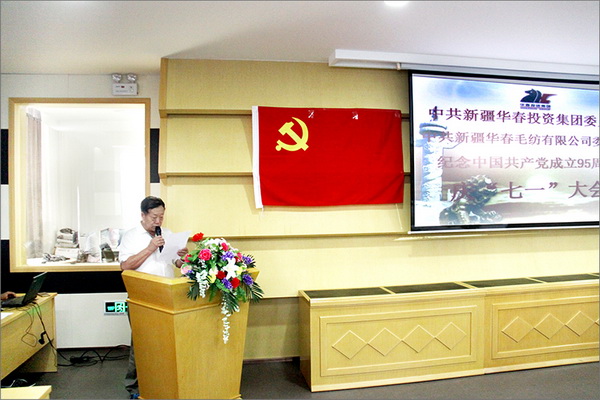 為慶祝中國共產(chǎn)黨建黨95周年,迎接“七一”黨的生日,6月28日,集團黨委與華春毛紡黨委慶“七一”黨員大會在華春毛紡AAA級旅游工業(yè)園舉行,60多名來自華春各條戰(zhàn)線的共產(chǎn)黨員和入黨積極分子的代表參會。