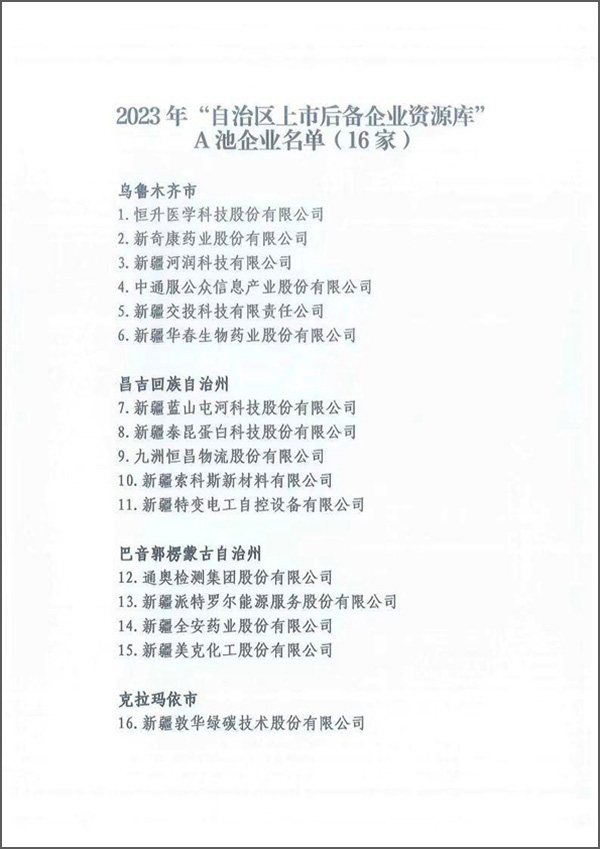 在華春集團(tuán)迎來28周年華誕節(jié)的喜慶時(shí)刻,華春生物藥業(yè)又迎來重大喜訊——在自治區(qū)地方金融監(jiān)督管理局于4月14日公布的2023年“自治區(qū)上市后備企業(yè)資源庫(kù)”名單中,新疆華春生物藥業(yè)股份有限公司連續(xù)名列資源庫(kù)A池企業(yè)名單。真是雙喜臨門,喜悅之情溢于言表!