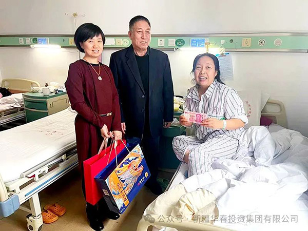 2月5日,當(dāng)新疆華春投資集團(tuán)董事局主席兼總裁李成功先生得知員工金奮榮的妻子患病住院動(dòng)手術(shù)的消息后,立即委托集團(tuán)副總裁馬生忠與華春小貸總經(jīng)理助理尹海玲前往醫(yī)院看望,為員工金奮榮患病妻子送上3000元慰問(wèn)金和兩箱慰問(wèn)品,并送上華春大家庭的親切關(guān)懷之情。