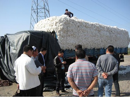 軋花廠工作人員在附近的一個棉花交易市場做調(diào)研
