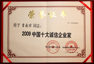 “企業(yè)信用評(píng)價(jià)AAA①級(jí)誠(chéng)信企業(yè)”和“2009中國(guó)十大誠(chéng)信企業(yè)家”獎(jiǎng)項(xiàng),是商務(wù)部研究院信用評(píng)級(jí)與認(rèn)證中心依據(jù)國(guó)家有關(guān)法律法規(guī),按照一定程序,集企業(yè)的債權(quán)債務(wù)管理、合同履行、公共記錄以及財(cái)務(wù)等信息,通過(guò)企業(yè)誠(chéng)信評(píng)價(jià)模型進(jìn)行科學(xué)評(píng)估出來(lái)的,旨在區(qū)分良莠、獎(jiǎng)優(yōu)罰劣,為我國(guó)企業(yè)參與國(guó)內(nèi)外市場(chǎng)競(jìng)爭(zhēng)創(chuàng)造必要的信用條件。信用等級(jí)由低向高依次為A級(jí)、AA級(jí)、AAA級(jí)、AAA①級(jí)。對(duì)信用等級(jí)達(dá)到A級(jí)以上的企業(yè),商務(wù)部都要在國(guó)家級(jí)權(quán)威媒體上進(jìn)行公示。