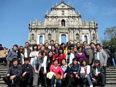 由香港借渡輪前往澳門,“賀國慶、慶回歸”的巨標(biāo),提醒著人們這里剛剛舉行過澳門回歸10周年的慶典。穿越了五百年的歷史,今天擺脫了殖民地的澳門,除了葡萄牙駐澳門總領(lǐng)事官邸掛著的一面綠色葡萄牙國旗外,其它皆是中華人民共和國國旗和澳門區(qū)旗,顯示著回歸的澳門,其背后有著強大祖國的支持。