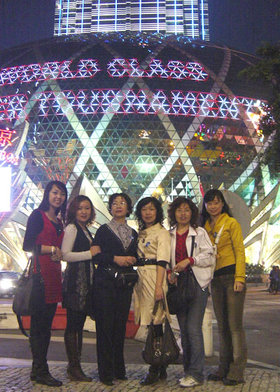 澳門以彩博業(yè)的歷史悠久而著稱,入夜,霓虹閃爍、奢華無比,金莎、巴比倫、金龍等娛樂場所比比皆是。欲望在賭場里橫流,賭客不僅僅是青壯年,不乏白發(fā)長者。有興趣的團員也小賭了一把,親身體驗了下一國兩制的特色。