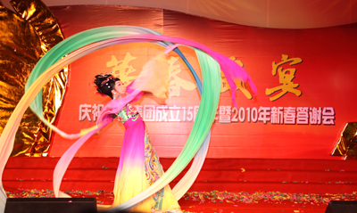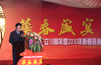 大型舞蹈《甜甜的歌兒迎賓客》拉開了慶典晚會(huì)的序幕,自治區(qū)工商聯(lián)黨組副書記、常務(wù)副主席陳建華發(fā)表了熱情洋溢的致辭:“過去的15年,華春投資集團(tuán)在創(chuàng)造社會(huì)財(cái)富、加快步伐的同時(shí),積極主動(dòng)、義不容辭地承擔(dān)社會(huì)責(zé)任,創(chuàng)造就業(yè)機(jī)會(huì)。關(guān)愛企業(yè)員工,在全區(qū)民營企業(yè)中率先建立員工子女助學(xué)基金和員工父母敬老基金,大力開展捐資助學(xué)活動(dòng),積極參與光彩事業(yè)和社會(huì)公益事業(yè),一次次為社會(huì)弱勢(shì)群體奉獻(xiàn)出了華春人的一片愛心。在15年的發(fā)展歷程中,華春投資集團(tuán)的努力,得到國家和社會(huì)的公認(rèn),獲得了諸多令業(yè)內(nèi)贊嘆的榮譽(yù)。歷史又將進(jìn)入了一個(gè)新的起點(diǎn),2010年是國務(wù)院“非公36條”和自治區(qū)黨委8號(hào)文件出臺(tái)五周年,今年5月自治區(qū)將召開推動(dòng)非公有制企業(yè)和中小企業(yè)發(fā)展的工作會(huì)議,華春投資集團(tuán)將迎來快速發(fā)展的新機(jī)遇。在此,我們衷心的祝愿:華春投資集團(tuán)在新的起點(diǎn)上,更加振奮精神、更加團(tuán)結(jié)奮斗、更加開拓前進(jìn),努力迎來2個(gè)、第3個(gè)、更多加更輝煌的15年!在此,我們衷心的希望:華春團(tuán)隊(duì)在今后的若干個(gè)15年中,為新疆經(jīng)濟(jì)發(fā)展、為整個(gè)社會(huì),再源源不斷的譜寫出創(chuàng)新、奮發(fā)、輝煌的新篇章!”