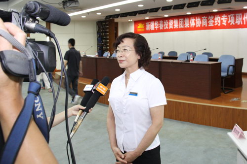 華春職工代表張新麗同志接受采訪
