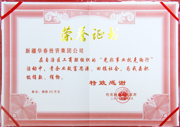 此次捐贈款項用于解決托克遜縣農牧民困難群眾生產(chǎn)資金周轉和貧困家庭子女上學等問題。華春集團以企業(yè)的社會責任感,歷來重視扶貧事業(yè),積極參與光彩事業(yè),回饋社會,為構建和諧新疆做出了民營企業(yè)的一份貢獻。