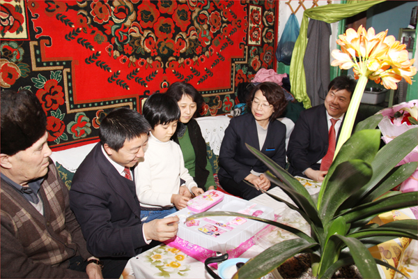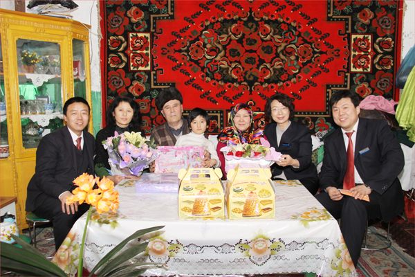 這是在2012年的“三八”國際勞動婦女節(jié)到來之際,華春投資集團工會主席高青、工會委員鄭培君和已故員工阿里木•阿吾東生前所在企業(yè)即華春投資集團下屬的新疆華景物業(yè)服務(wù)有限公司的管理人員一行,帶著華春投資集團總裁李成功先生和華春全員的深情厚誼,特地前往已故員工阿里木•阿吾東的家,看望慰問了其父母與妻子、孩子,送上鮮花和慰問品,致以誠摯的關(guān)愛之情并送上節(jié)日的祝福,使已故員工的家屬真切感受到了來自華春這個大家庭的關(guān)懷和溫暖。