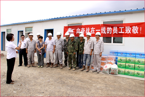 6月30日,新疆華春投資集團(tuán)工會(huì)主席高青和行政辦副主任鄭培君、華春集團(tuán)子公司新疆恒潤(rùn)實(shí)業(yè)有限公司辦公室主任及集團(tuán)編輯部全員一行,將一箱箱的統(tǒng)一綠茶和茉莉蜜茶、一件件的純凈水及綠豆、冰糖、白糖等降溫防暑飲料與物品,送給奮戰(zhàn)在五家渠華春毛紡工業(yè)園項(xiàng)目建設(shè)工地的一線(xiàn)員工,同時(shí)也送去了李成功總裁和華春全員的關(guān)愛(ài)之心。一線(xiàn)員工們接到公司送來(lái)的慰問(wèn)品,深深感受到公司的關(guān)懷,“感謝李總裁對(duì)我們的關(guān)心!謝謝公司對(duì)我們的慰問(wèn)看望!”