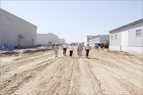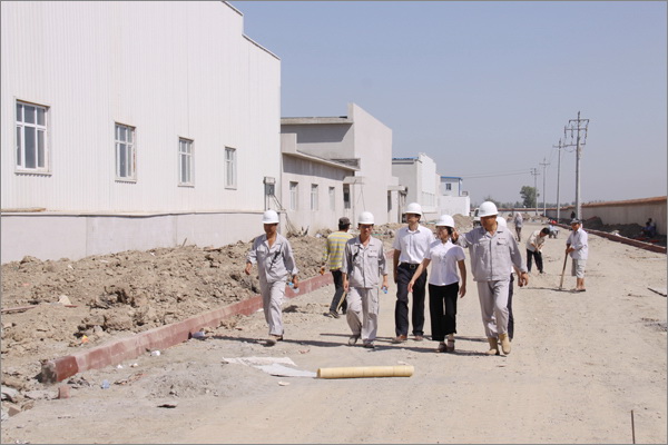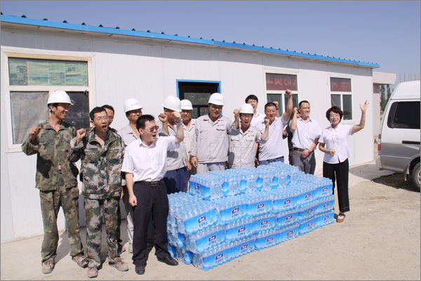 在新疆華春投資集團工會發(fā)出“決戰(zhàn)50天 建成毛紡工業(yè)園”號召后的20天,于7月31日集團工會主席高青攜編輯部全員,帶著李成功總裁和華春全體員工的期望,前往五家渠毛紡工業(yè)園項目建設工地,對工程技術人員“誓保毛紡工業(yè)園如期建成”諾言的兌現情況進行了解,同時對奮戰(zhàn)在一線的工程部、華春毛紡公司的員工和設備安裝人員進行了慰問,送去了礦泉水。