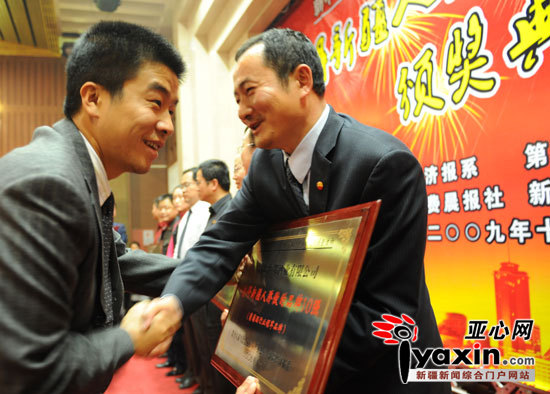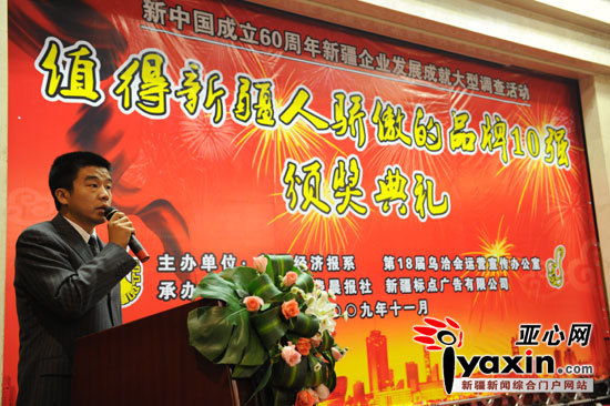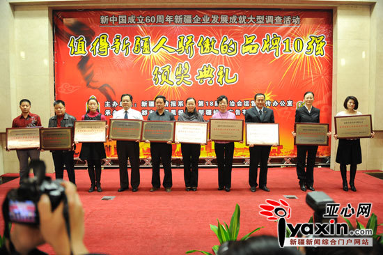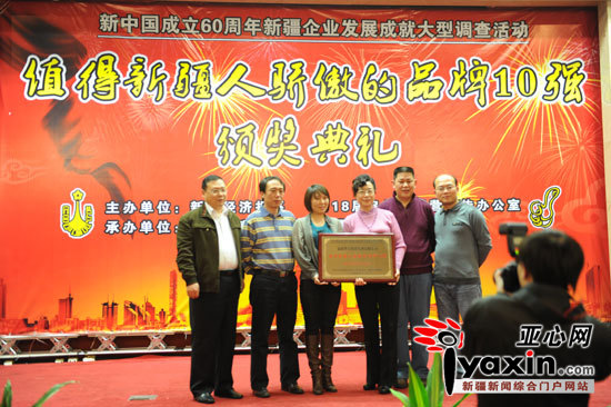 《亞心網(wǎng)》2009.11.09報(bào)道:“值得新疆人驕傲的品牌10強(qiáng)”評選活動頒獎