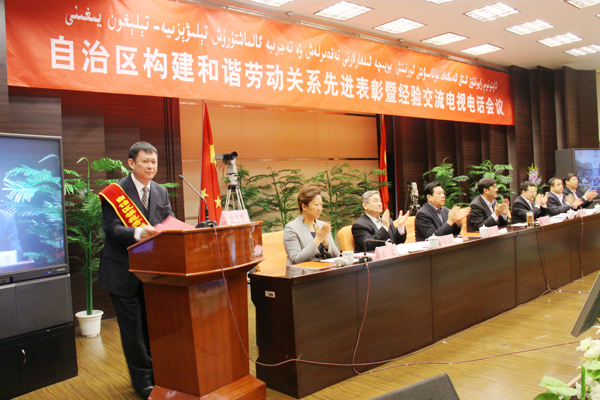 2011年12月17日,在自治區(qū)黨委電視電話會議室隆重召開的“自治區(qū)構(gòu)建和諧勞動關(guān)系先進表彰暨經(jīng)驗交流電視電話會議”上,新疆華春投資集團榮獲“自治區(qū)模范勞動關(guān)系和諧企業(yè)”稱號,受到自治區(qū)黨委、政府的表彰,這是新疆自治區(qū)黨委、政府授予企業(yè)的最高榮譽。自治區(qū)黨委副書記、自治區(qū)主席努爾•白克力出席會議并作了重要講話,并與自治區(qū)黨政領(lǐng)導(dǎo)同志會見了受表彰的模范勞動關(guān)系和諧企業(yè)和工業(yè)園區(qū)代表。