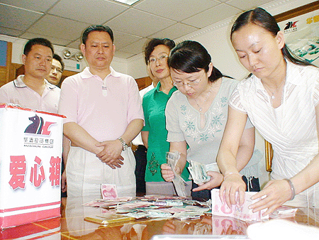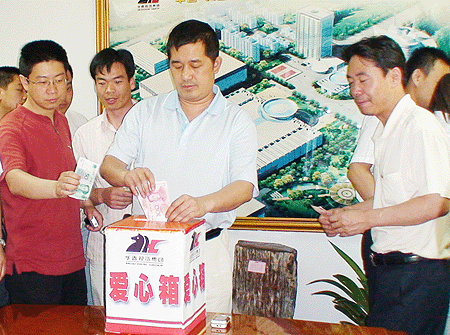 當(dāng)華春從新聞上得知5月12日下午四川汶川縣發(fā)生了7.8級(jí)強(qiáng)烈地震、突如其來的強(qiáng)烈地震襲擊了四川省汶川縣及其周邊地區(qū)造成了巨大的生命財(cái)產(chǎn)損失的消息后,華春企業(yè)工會(huì)和黨支部于13日發(fā)出向地震災(zāi)區(qū)群眾捐款救助倡議,災(zāi)難牽動(dòng)著全體工友們的心,立即得到華春全體員工的積極響應(yīng),董事局主席兼總裁李成功先生帶頭捐款,大家紛紛向?yàn)?zāi)區(qū)獻(xiàn)出愛心。