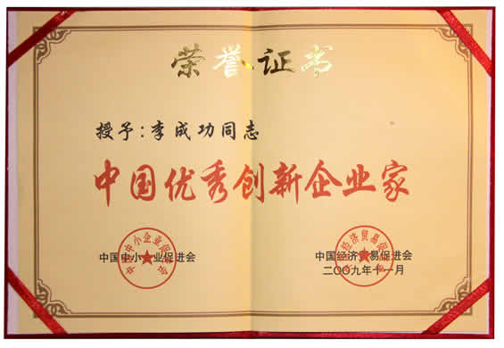 “中國優(yōu)秀創(chuàng)新企業(yè)家”榮譽證書
